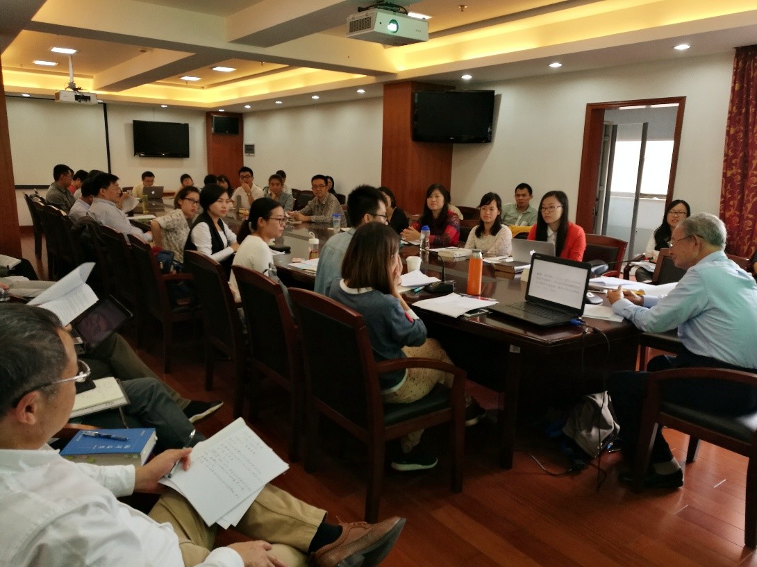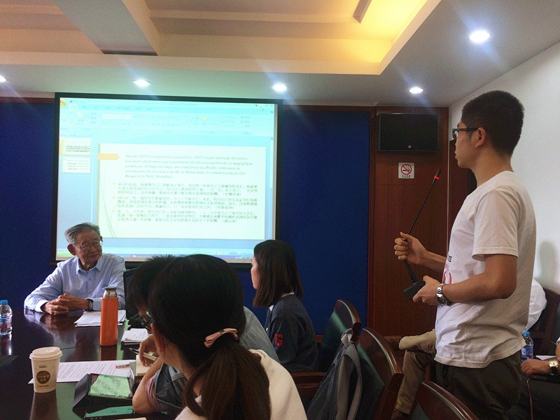 2016年10月19日上午,复旦外文学院法语系的硕士研究生翻译理论课,有幸邀请资深翻译家、被誉为“傅雷传人”的罗新璋先生,为大家带来一场别开生面的“翻译讨论课”。讲座在文科楼220会议室举行,由复旦法语系系主任袁莉老师主持,诸多翻译工作者与研究者纷纷到场,还吸引了不少其他院系的翻译爱好者前来聆听译界泰斗的口传心授。