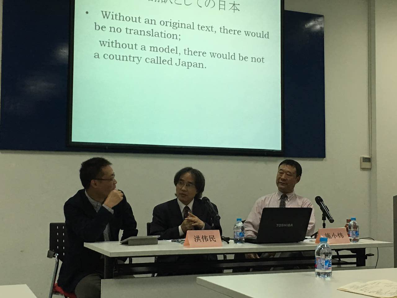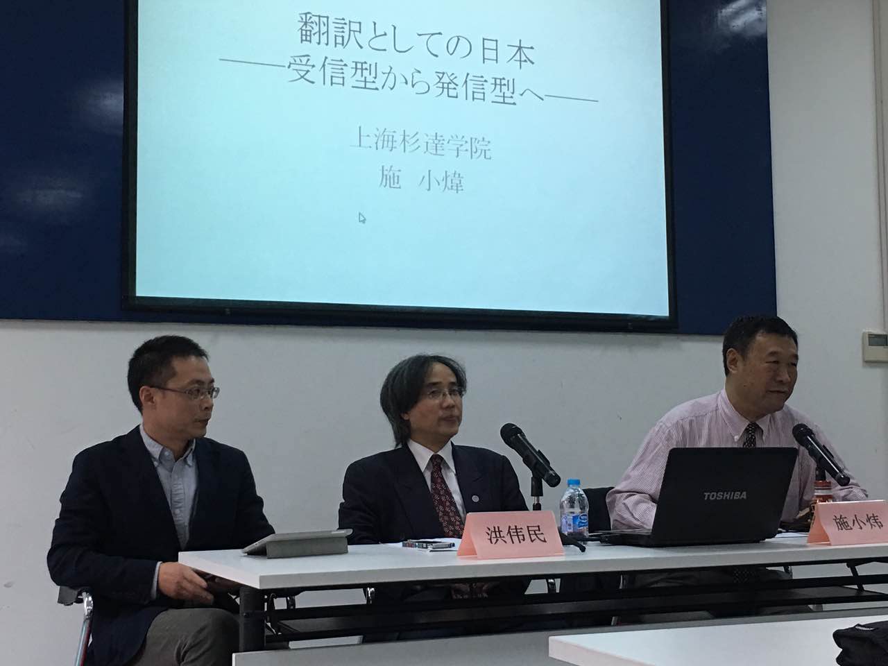 第三讲:文化之趣——作为翻译的日本。主讲人为上海杉达大学日文系主任施小炜老师与上海商学院日文系主任洪伟民老师。在讲座中,施小炜教授详细分析了翻译对于日本文学文化生成的重要作用。日本古代以音读、训读接纳来自中国大陆的文化,近代以后又转向西学的译介与接受。翻译既是工具,也是方法。洪伟民教授从日本对中国孝文化、民俗节日的接受与转化着手,提示了文化的“翻译”。