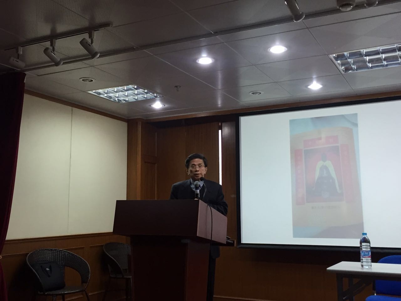 首先,闵教授以“韩中交流与韩国语言文化发展历史”为主题,从中韩交流史、语言的影响、韩国语的发展等三个方面进行了阐述,向我们娓娓道来中韩两国悠久的文化长卷。