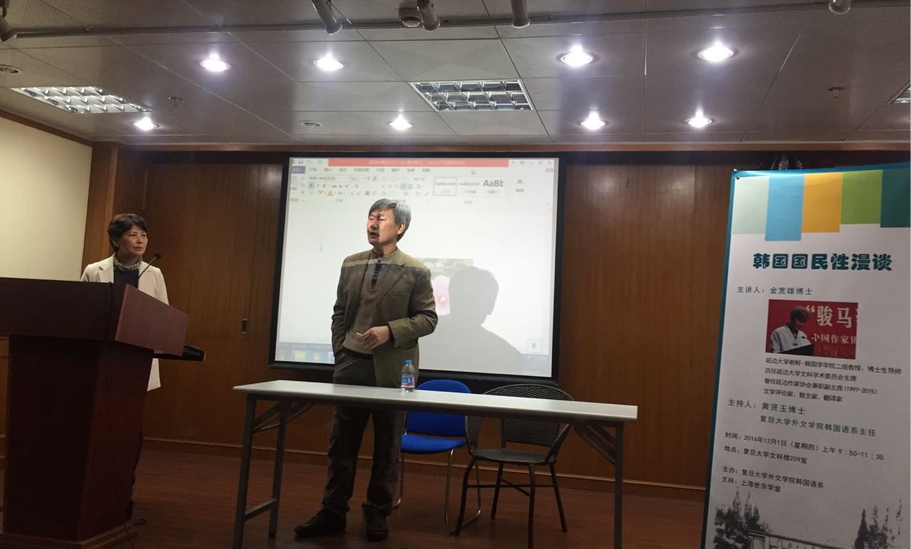 2016年12月1日上午在开元网站登录入口文科楼,来自延边大学朝文系的金宽雄教授作客开元网站登录入口韩文系,以“韩国国民性漫谈”为主题展开讲座。该讲座由韩文系主任黄贤玉教授主持。韩文系全体师生出席了本次讲座。