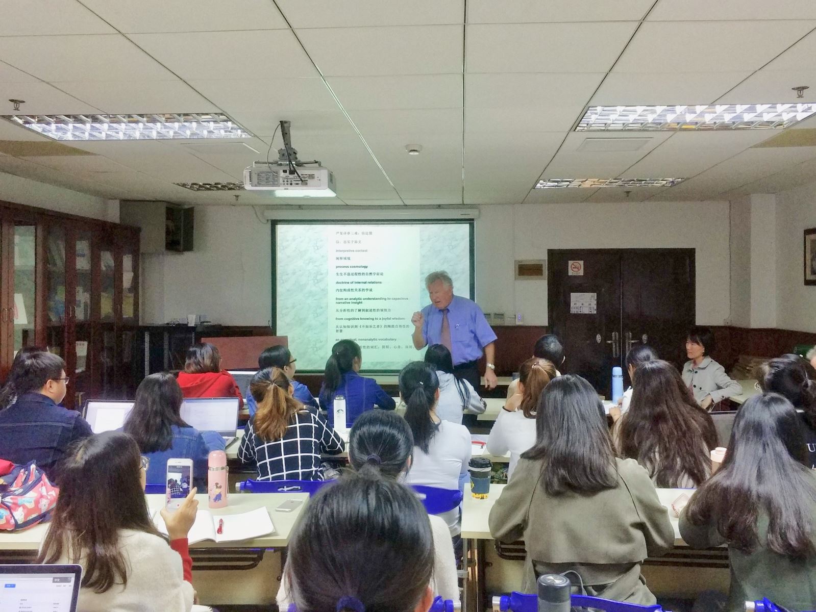 2017年10月13日上午,著名汉学家安乐哲教授走进复旦外文学院,就中西方哲学比较和中国哲学英译的问题进行了一场别开生面的讲座。本场讲座由翻译系陶友兰教授组织,从事《论语》英译研究的强晓博士主持,来自校内外的众多老师同学纷纷到场聆听,整个会场内座无虚席。