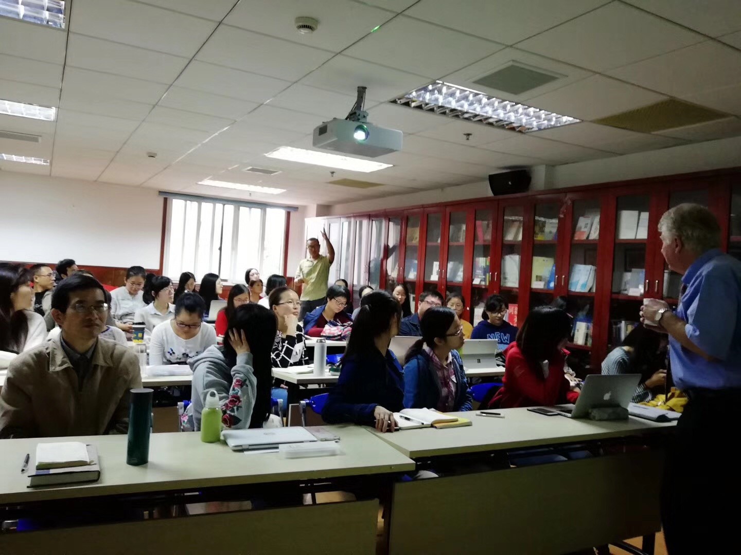 在最后的提问交流环节中,听众就中国传统文化词汇翻译的多元性、中国哲学英译面临的挑战及存在问题的原因等进行提问,安乐哲教授机智有趣地回答了上述问题,还分享了一个小故事:当他在外国书店里找寻《论语》、《易经》等中国传统哲学类书籍时,发现这类书被归在了东方宗教当中。这种有些荒谬可笑的文化误解,恰恰反映了外国对于中国文化还不够了解,跨文化翻译还有很长的路要走。因此他鼓励在场的各位青年译者主动承担起跨文化翻译的重任,让世界更加了解中国,让中国更好地走向世界。最终,讲座在一片热烈的掌声中圆满落幕。