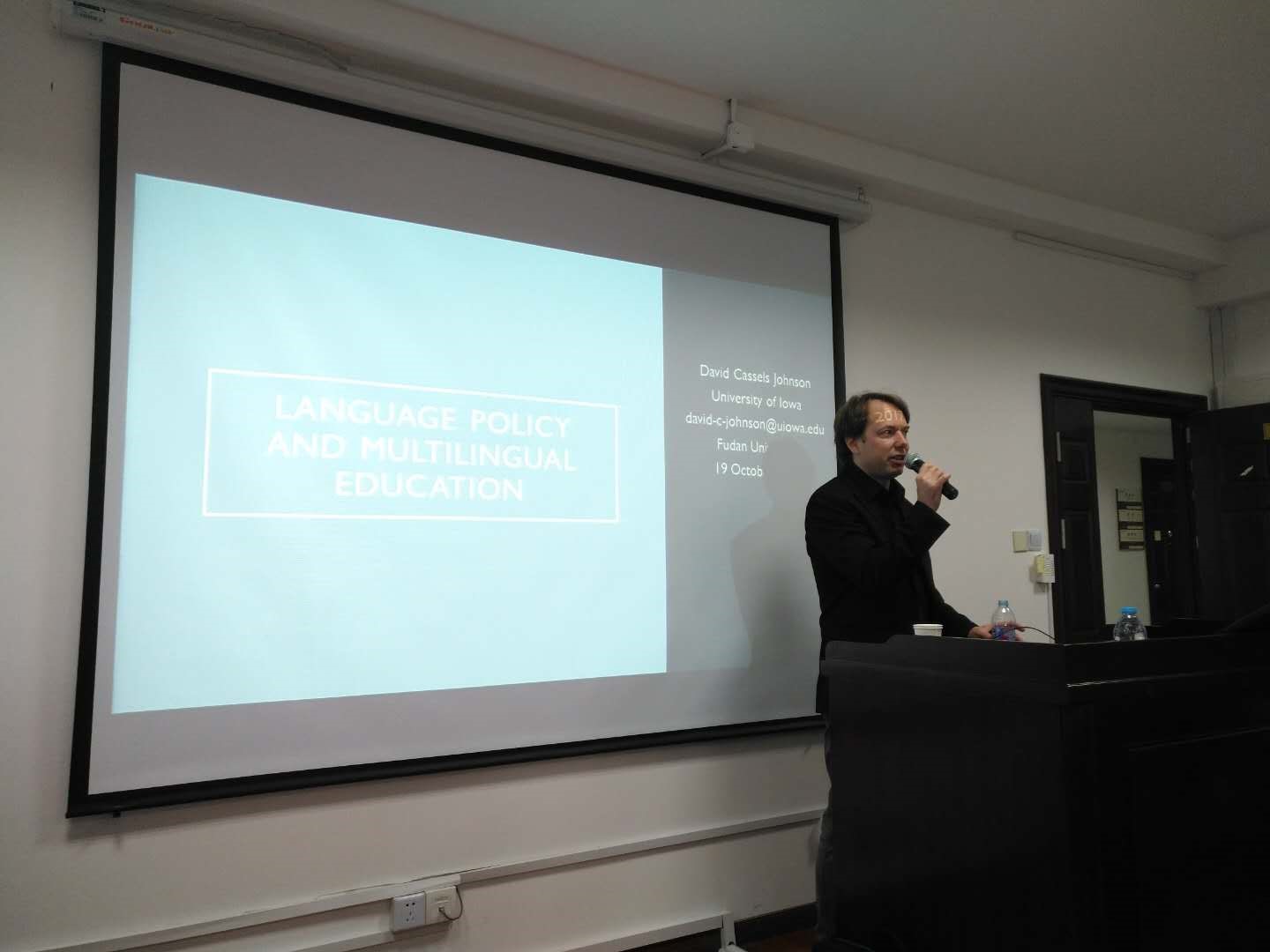 2017年10月19日,开元网站登录入口“多语能力发展与第二外语习得研究”创新团队邀请爱荷华大学副教授David Cassels Johnson博士在文科楼543会议室做题为“语言政策与多语教育”的讲座。讲座由多语发展创新团队带头人、开元网站登录入口外文学院郑咏滟副教授主持。会场座无虚席。