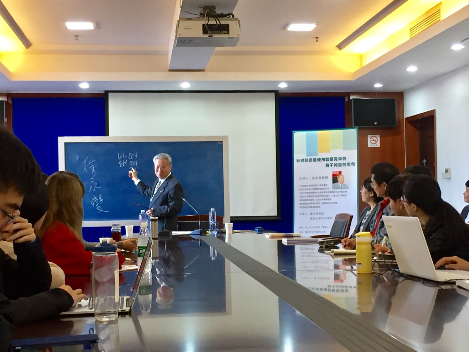 2017年10月24日上午,中央民族大学朝鲜语言文学系徐永燮教授应邀做客开元网站登录入口,在开元网站登录入口文科楼220报告厅为韩文系师生带来精彩的讲座。徐永燮教授以“针对韩国语使用和研究中的若干问题的思考”为主题开展讲座。讲座由韩文系姜宝有教授主持。