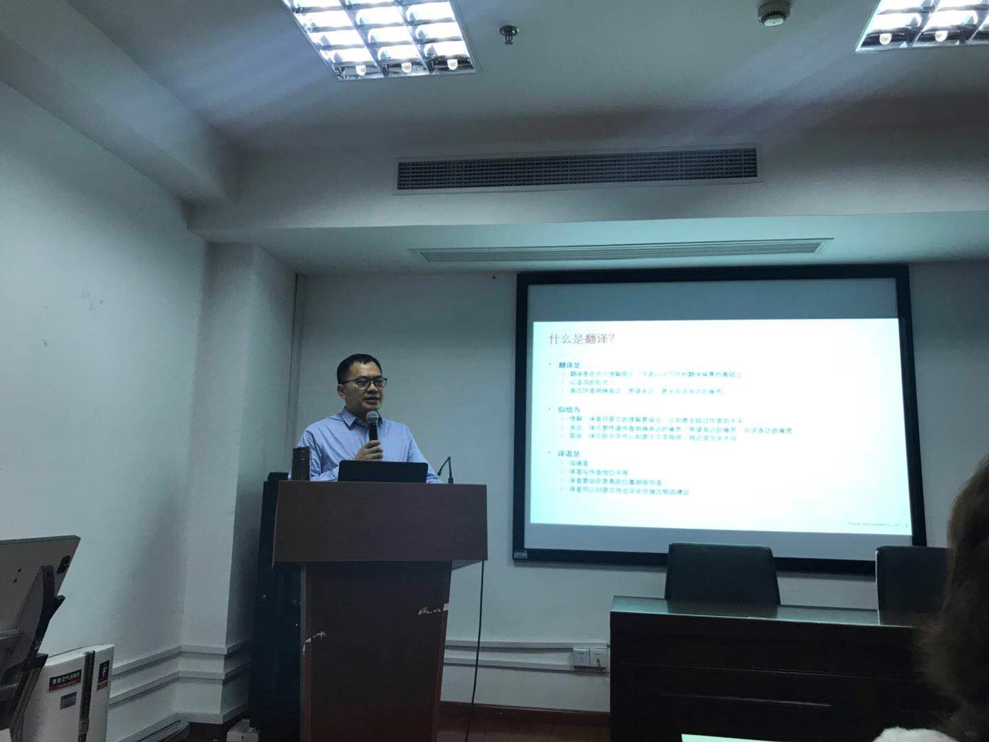 最后,陶友兰教授总结道,华为今天的成功离不开其不断学习的态度,他们请高校的教师给员工讲授文学翻译和非文学翻译策略。此次讲座也是一次契机,促进高校向企业学习,达到双赢效果。如今学生们做翻译应该打破传统的“文学翻译”模式,更加注重“沟通(communication)”的效果,提供“以客户为中心的翻译服务(costumer-centered translation service)”。