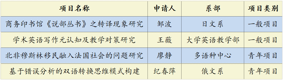 外文学院2018年度上海市哲学社会科学规划项目立项名单
