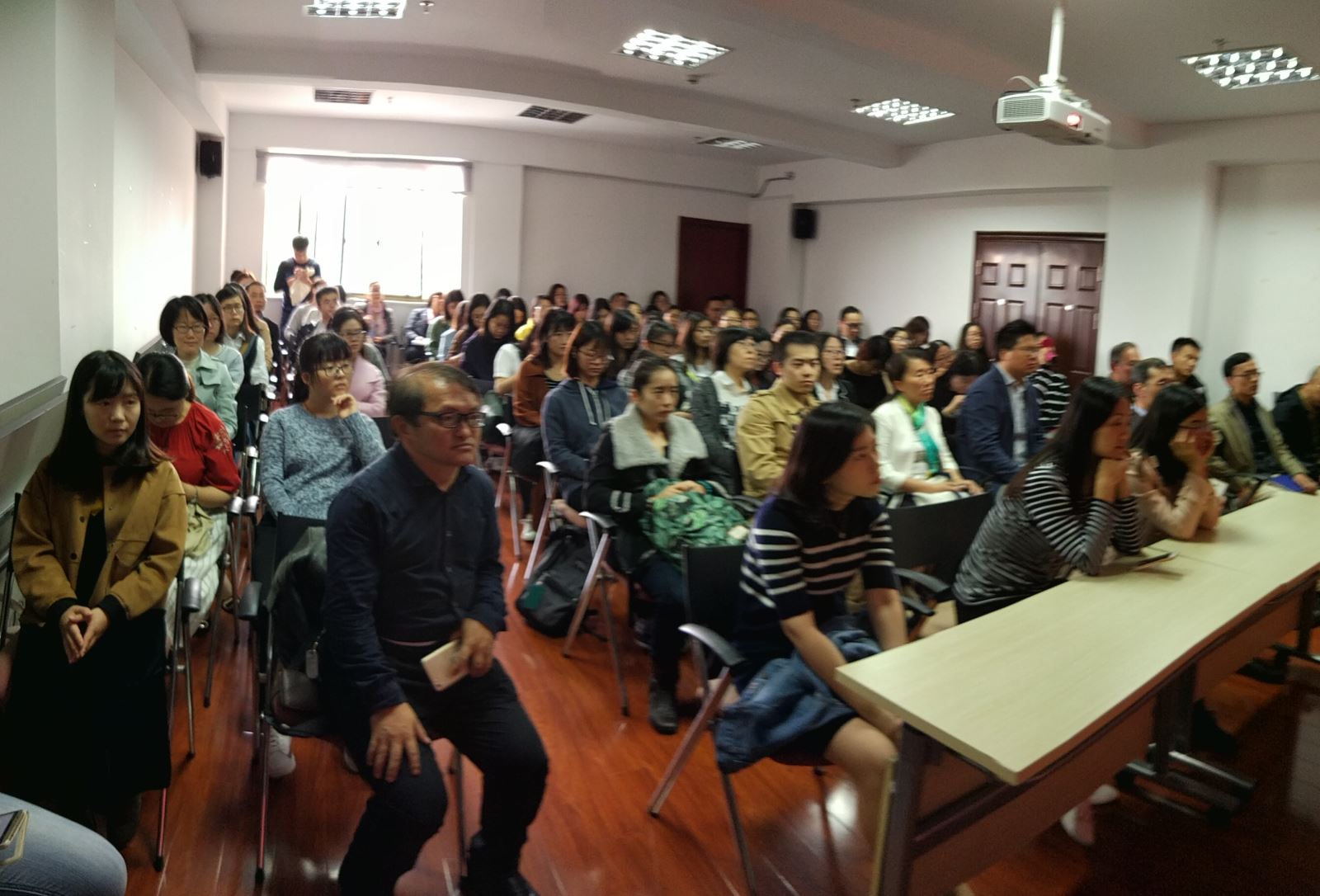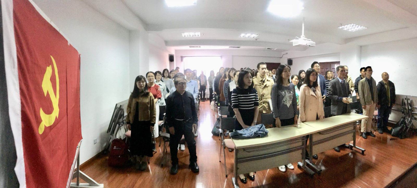 上午9时,参加集中收看的师生党员齐聚一堂。