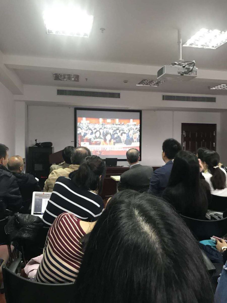 外文学院分党委在文科楼510会议室设置转播点,组织师生党员集中收看十九大开幕式,学习习近平总书记重要讲话。学院分党委委员、部分教师党员和学生党员60余人参加集中收看,部分师生党员和在海外交流学习的学生党员通过各种渠道收看学习。
