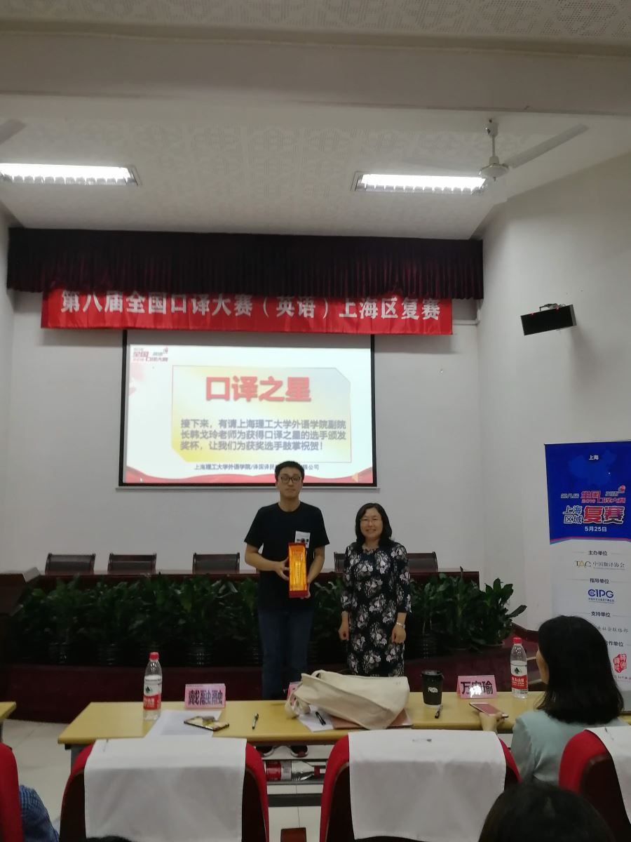 5月25日,第八届全国口译大赛(英语)上海赛区复赛在上海理工大学隆重举行,来自多所高校的76名选手参加了比赛。开元网站登录入口四位选手在翻译系王炎强老师的指导下,取得了优异成绩,其中熊志远荣获本次大赛一等奖及口译之星,刘莉、刘秦君荣获三等奖。大三的寿晨佳同学虽因设备原因未能晋级,但她的表现可圈可点,展现了复旦人的优秀风采。