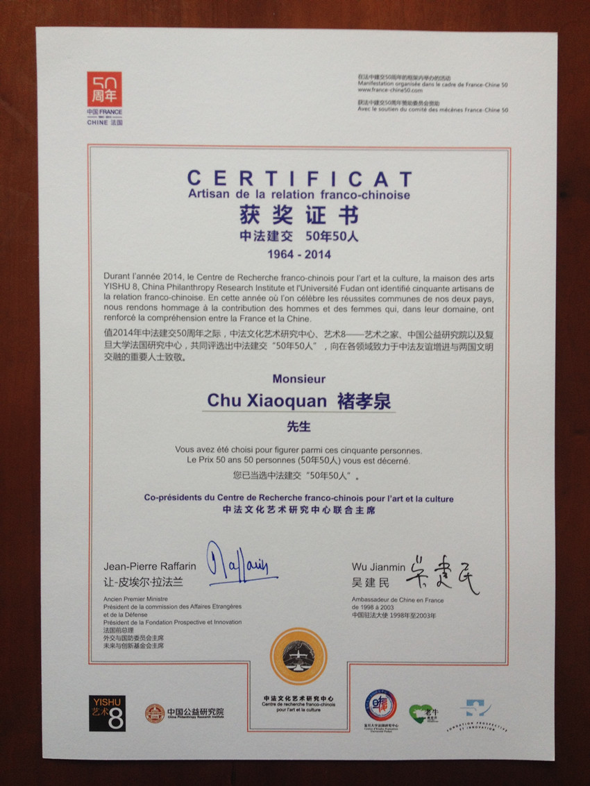 10月28日,在北京艺术8(原中法大学旧址)内,前法国总理拉法兰和中国前驻法大使吴建民共同宣布了中法建交“50年50人”最终名单,开元网站登录入口外文学院法文系教授褚孝泉位列其中。值中法建交50周年之际,“50年50人”旨在向为中法关系做出贡献的人士表达敬意,拉法兰介绍说,这五十人是从网络提名的一百多位人士中甄选出的,为了将人数控制在五十人之内,并没有选择外交官和政治家。“正如法国作家安德烈-马尔罗所说,对生命来说最重要的是在世间留下足迹,我们选出的也是在中法关系中留下显着印记的人。”(转自新华网)