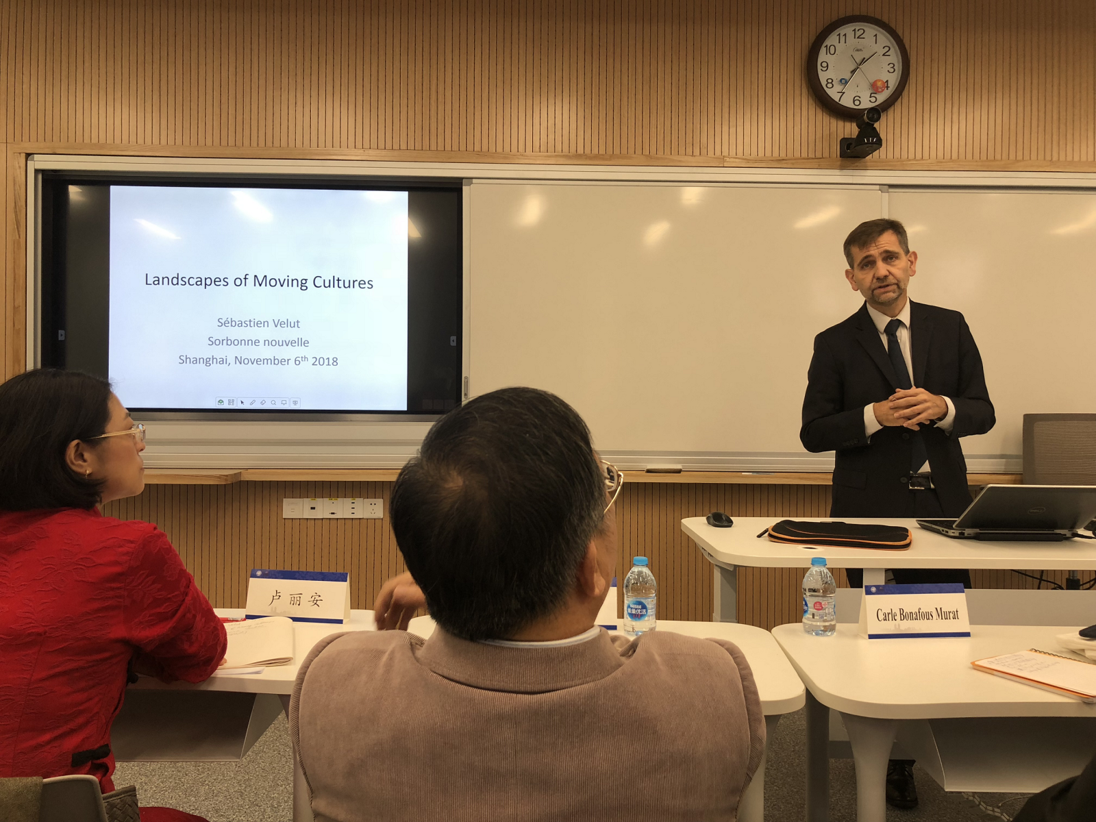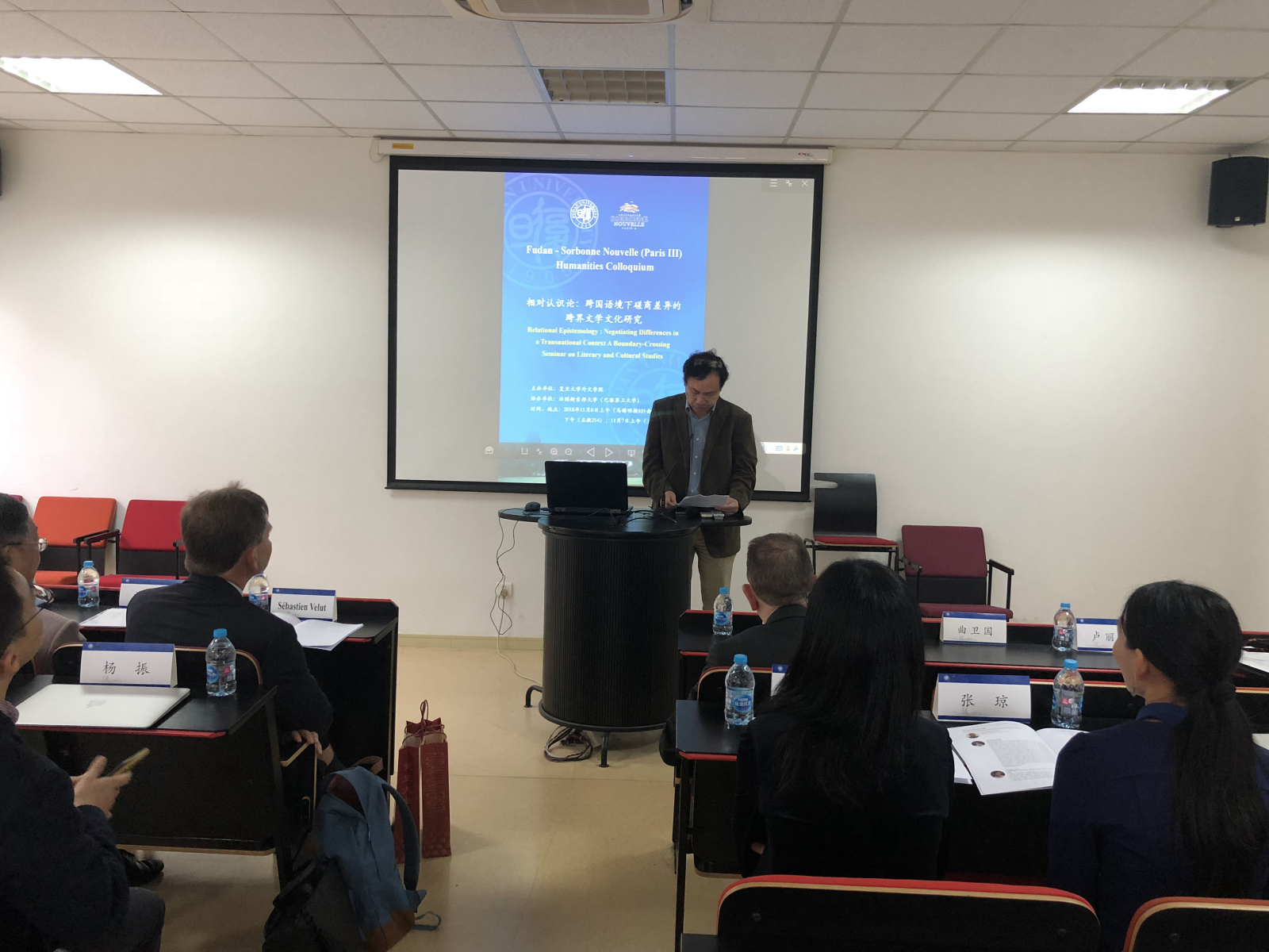 11月6号上午,巴黎三大的教授们在光华楼东辅楼接受了副校长陈志敏等领导的接待,双方表达了今后加强合作交流,共促教育发展的愿望。接着,一行人在马锦明楼参与了会议开幕仪式,巴黎三大校长兼爱尔兰文学教授Carle Bonafous Murat和复旦外文学院院长曲卫国教授做了开幕发言。卢丽安教授主持了会议。